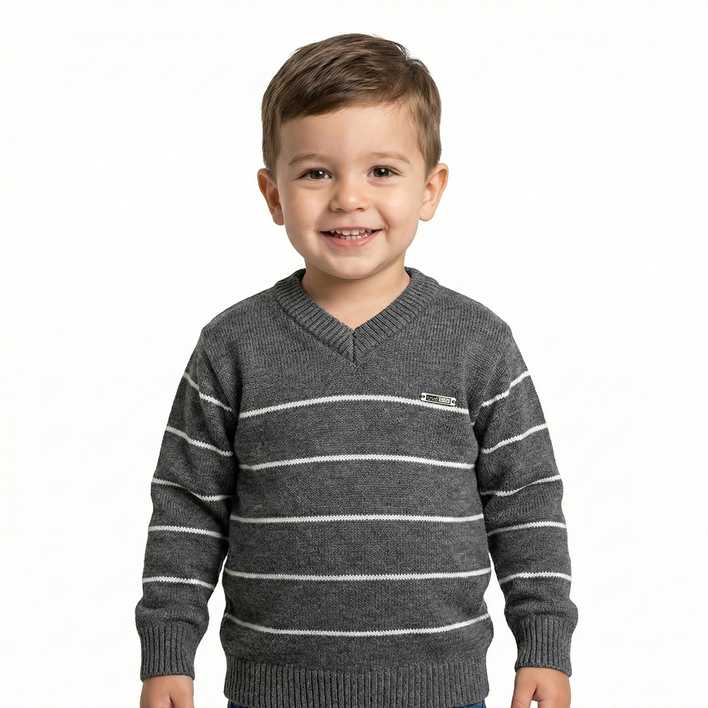 Blusa Listras Tricô Kids feito em tecido acrílico, gola redonda, estampa Tricô Kids na lateral do peito, manga longa e etiquetas personalizadas.