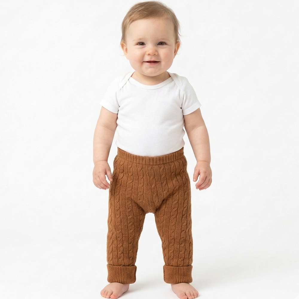 Confeccionada em malha macia de alta qualidade, a calça possui textura trançada que adiciona um toque sofisticado ao visual. O cós elástico garante ajuste confortável ao corpo do bebê, facilitando na hora de vestir e proporcionando liberdade de movimentos.
