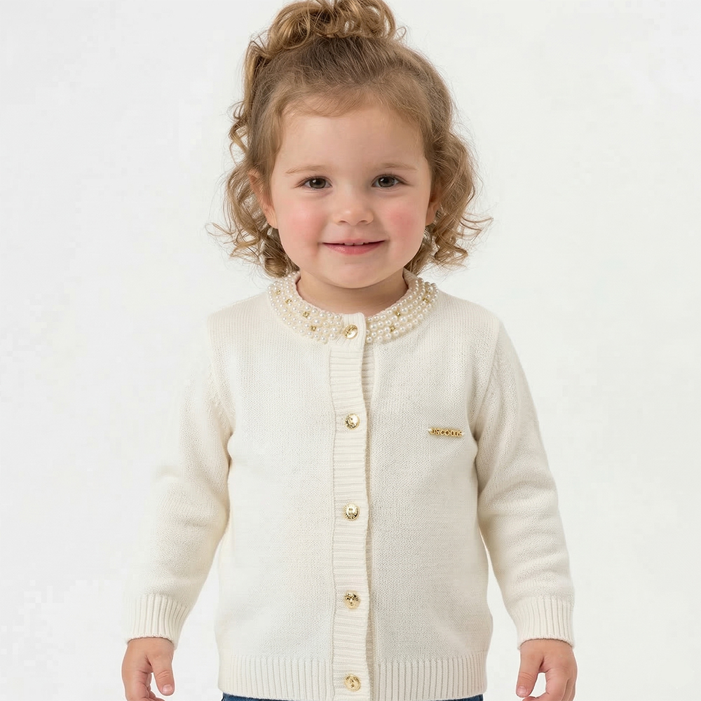 CASACO GOLA BORDADA PÉROLAS TRICÔ KIDS
