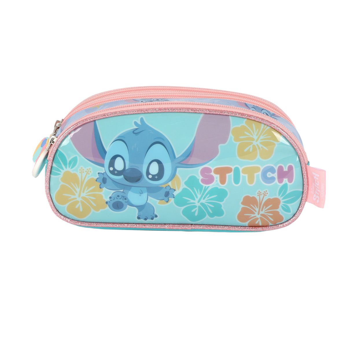 Estojo Escolar Triplo Luxcel Stitch Aloha Azul Turquesa