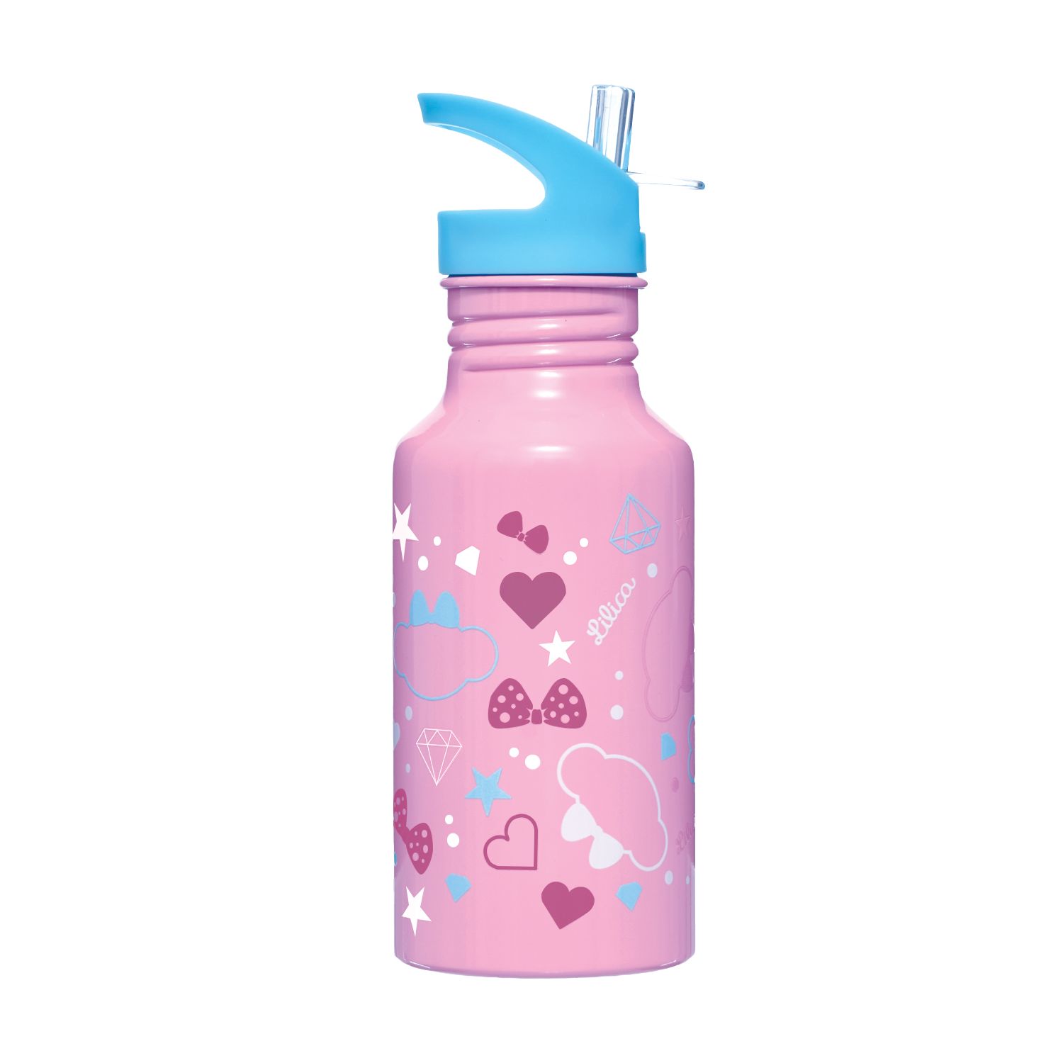 Garrafa de aluminio Lilica Ripilica, confeccionada em plástico estampado, canudo de silicone, tampa de rosquear e estampa exclusiva.