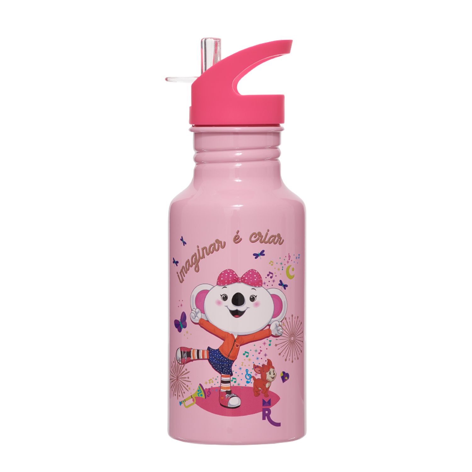Garrafa de alumínio Lilica Ripilica, confeccionada em plástico estampado, canudo de silicone, tampa de rosquear e estampa exclusiva.
