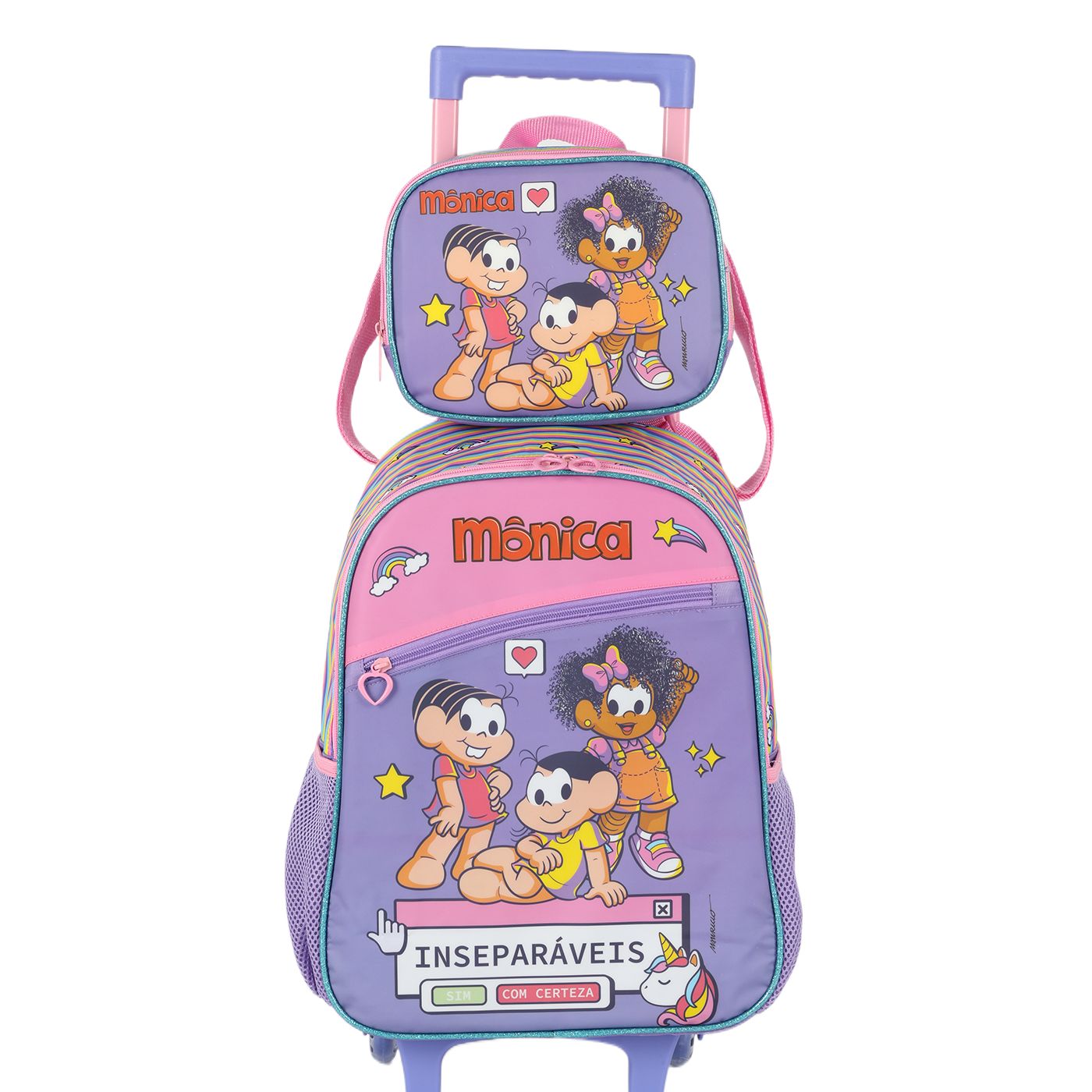 Kit Mochila Rodinha Lancheira Luxcel Turma Da Mônica Roxo