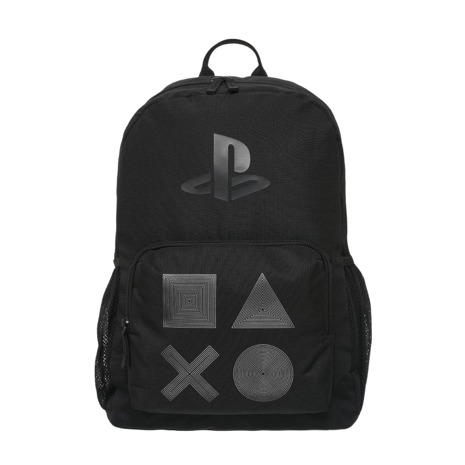 Mochila de costas, que conta com estampa frontal, bolso frontal, telinha lateral, compartimento grande com fechamento em zíper e etiquetas personalizadas.
